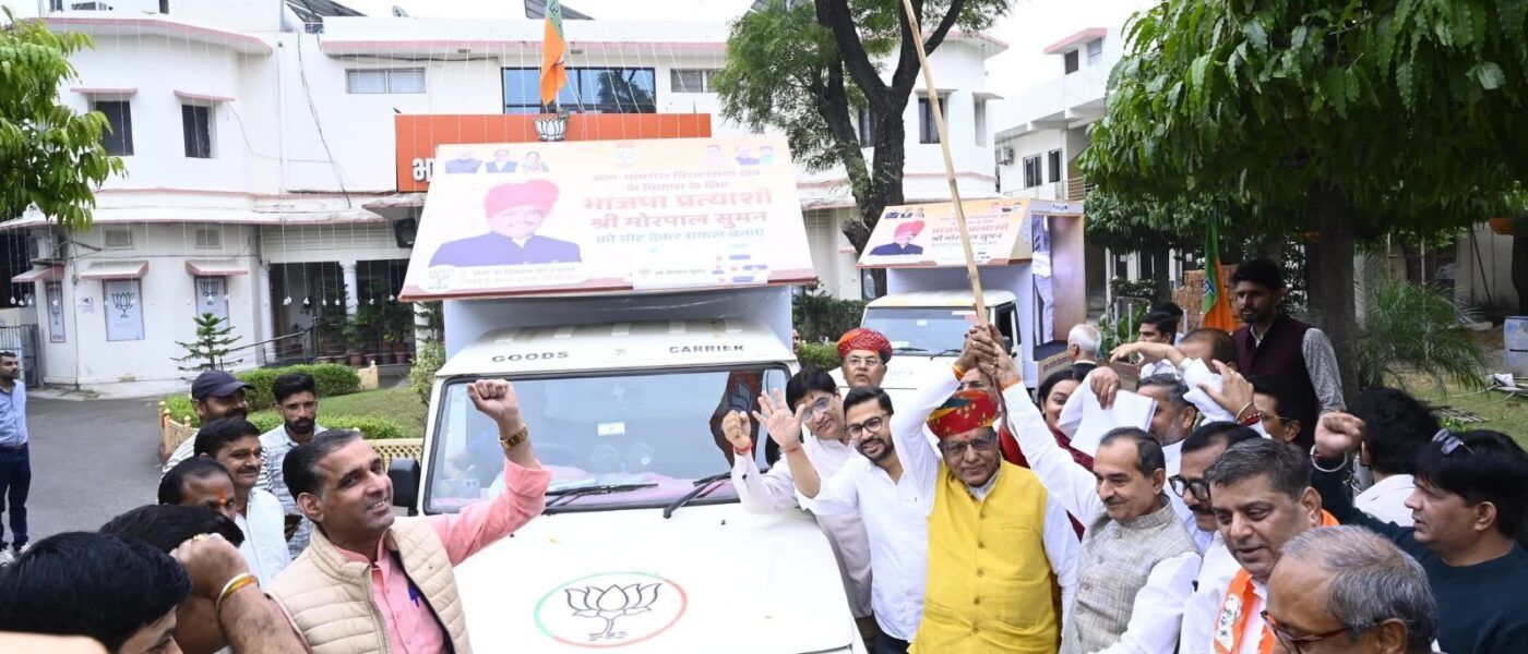 अंता उपचुनाव प्रचार-प्रसार के लिए रथों को प्रदेशाध्यक्ष मदन राठौड़ ने किया रवाना