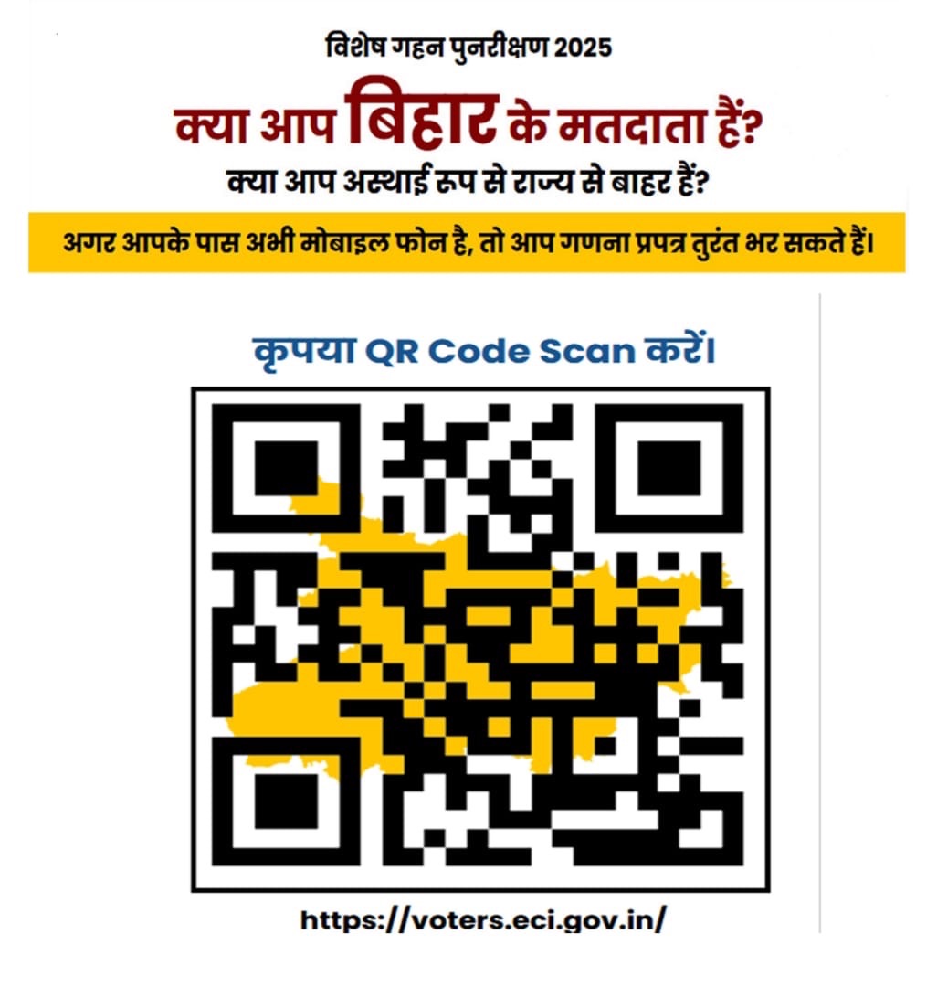 उन्होंने बताया कि बिहार विशेष गहन पुनरीक्षण में निम्न दस्तावेजों में से कोई भी एक गणना प्रपत्र संलग्न किया जा सकता है-