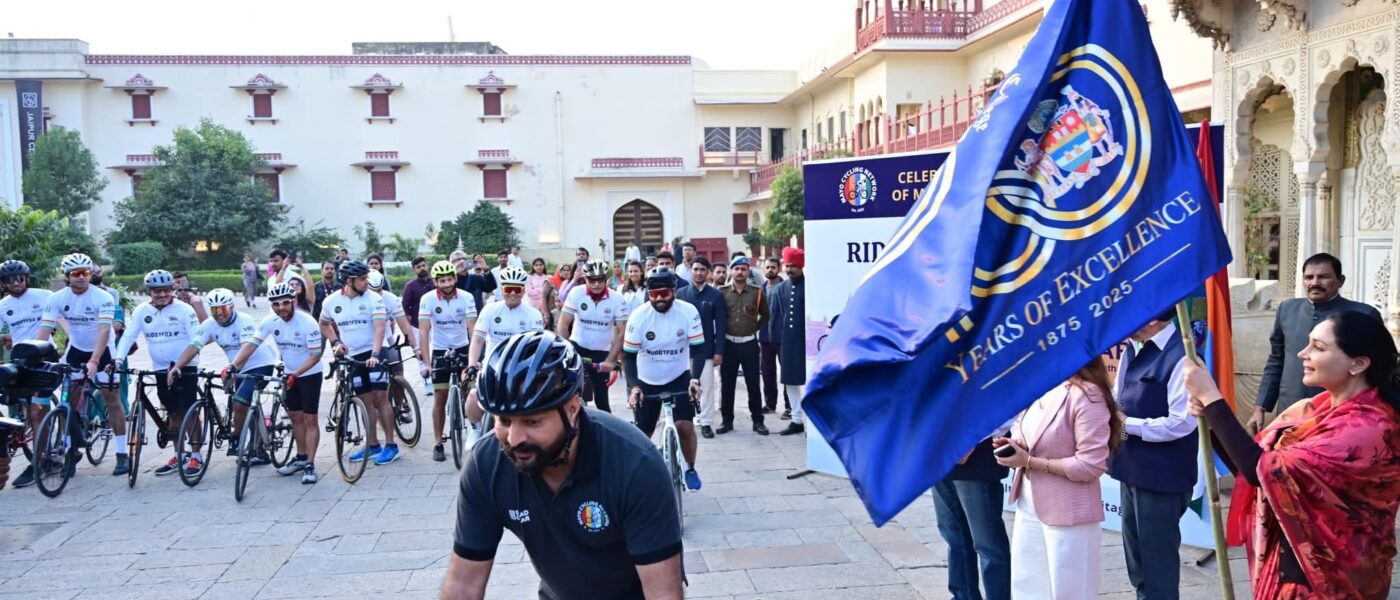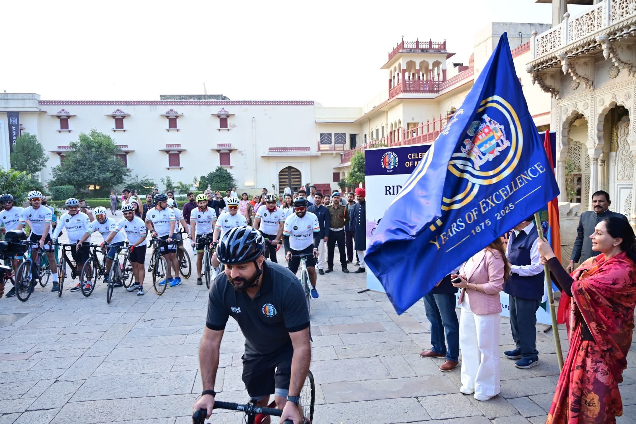 26 नवम्बर, 2025 जयपुर। मेयो कॉलेज, अजमेर की 150वीं वर्षगांठ के उपलक्ष्य में आयोजित विशेष साइकिल रैली “राइड टू मेयो 150 किमी” को आज राजस्थान की उप मुख्यमंत्री दिया कुमारी ने हरी झंडी दिखाई। उपमुख्यमंत्री ने रैली को सिटी पैलेस के सर्वतोभद्र चौक के द्वार से हरी झंडी दिखाकर अजमेर के लिए रवाना किया। उल्लेखनीय है कि मेयो साइक्लिंग नेटवर्क द्वारा ये साइकिल रैलियां अब तक भारत के 33 शहरों तथा विदेशों में भी आयोजित हो चुकी है।