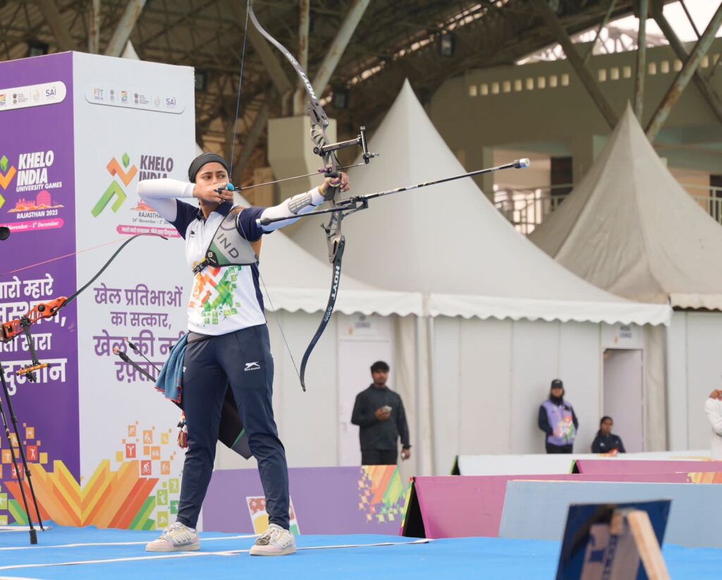 आर्चर अंशिका कुमारी और देवांग गुप्ता ने रिकर्व मेन्स और विमेंस फाइनल जीते, और फिर शाम को एलपूयी को टीम गोल्ड दिलाने के लिए लौटे। विमेंस रिकर्व फाइनल में, अंशिका ने पंजाब यूनिवर्सिटी की सृष्टि जायसवाल को 6-2 से हराया, जबकि गुप्ता ने जगतपुरा स्पोर्ट्स कॉम्प्लेक्स में मेन्स रिकर्व फाइनल में शिवाजी यूनिवर्सिटी के साहिल शेलार को 6-4 से हराया।