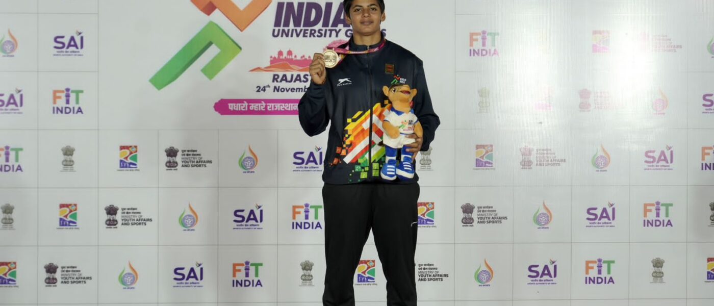 1 दिसंबर, 2025 जयपुर। चंडीगढ़ यूनिवर्सिटी की तान्या चौधरी ने सोमवार को यहां सवाई मानसिंह स्टेडियम में खेलो इंडिया यूनिवर्सिटी गेम्स राजस्थान 2025 में महिलाओं के हैमर थ्रो में अपना ही मीट और ऑल इंडिया यूनिवर्सिटी रिकॉर्ड तोड़कर गोल्ड मेडल जीता, जबकि जैन यूनिवर्सिटी की कीर्थना और शिवाजी यूनिवर्सिटी के रुशीप्रसाद देसाई को सबसे तेज़ महिला और पुरुष एथलीट का खिताब मिला।