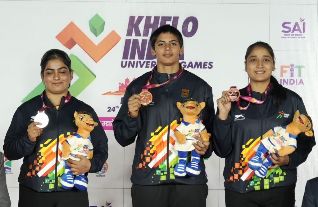 लॉन्ग जंप: गोल्ड – दीपांशी सिंह (डॉ राम मनोहर लोहिया यूनिवर्सिटी) 6.20मीटर; सिल्वर – श्रीदेविका VS (मैंगलोर यूनिवर्सिटी) 6.05 मीटर; ब्रॉन्ज़ – निमिशा (LPU) 5.54 मीटर