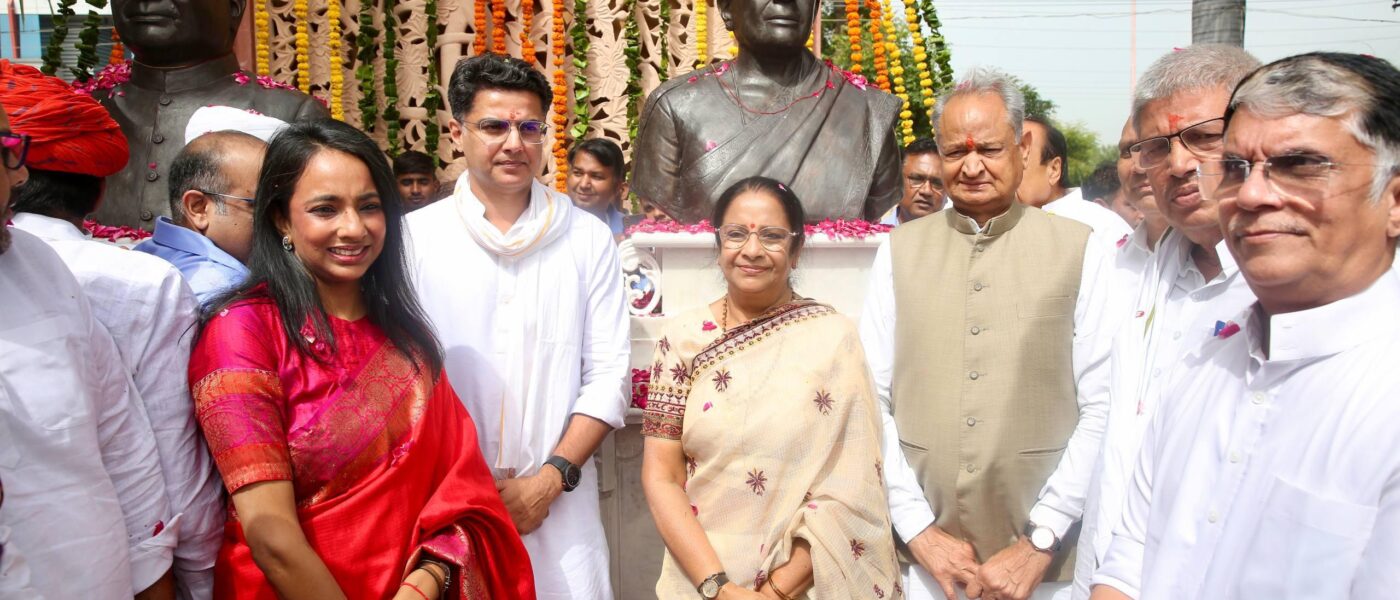 8 अक्टूबर, 2025 भीलवाड़ा। पूर्व मुख्यमंत्री स्व. शिवचरण माथुर एवं स्वतंत्रता सेनानी स्व. सुशीला देवी माथुर की मूर्तियों का अनावरण पूर्व सीएम अशोक गहलोत व कांग्रेस के राष्ट्रीय महासचिव सचिन पायलट ने बतौर मुख्य अतिथि किया।