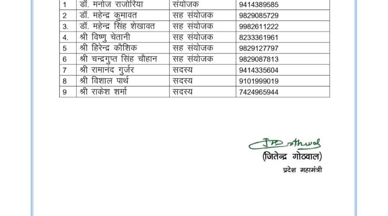 Read More29 सितंबर, 2025 जयपुर। भारतीय जनता पार्टी राजस्थान द्वारा “गांधी जयंती” के लिए अपनी प्रदेश स्तरीय टोली का गठन किया।