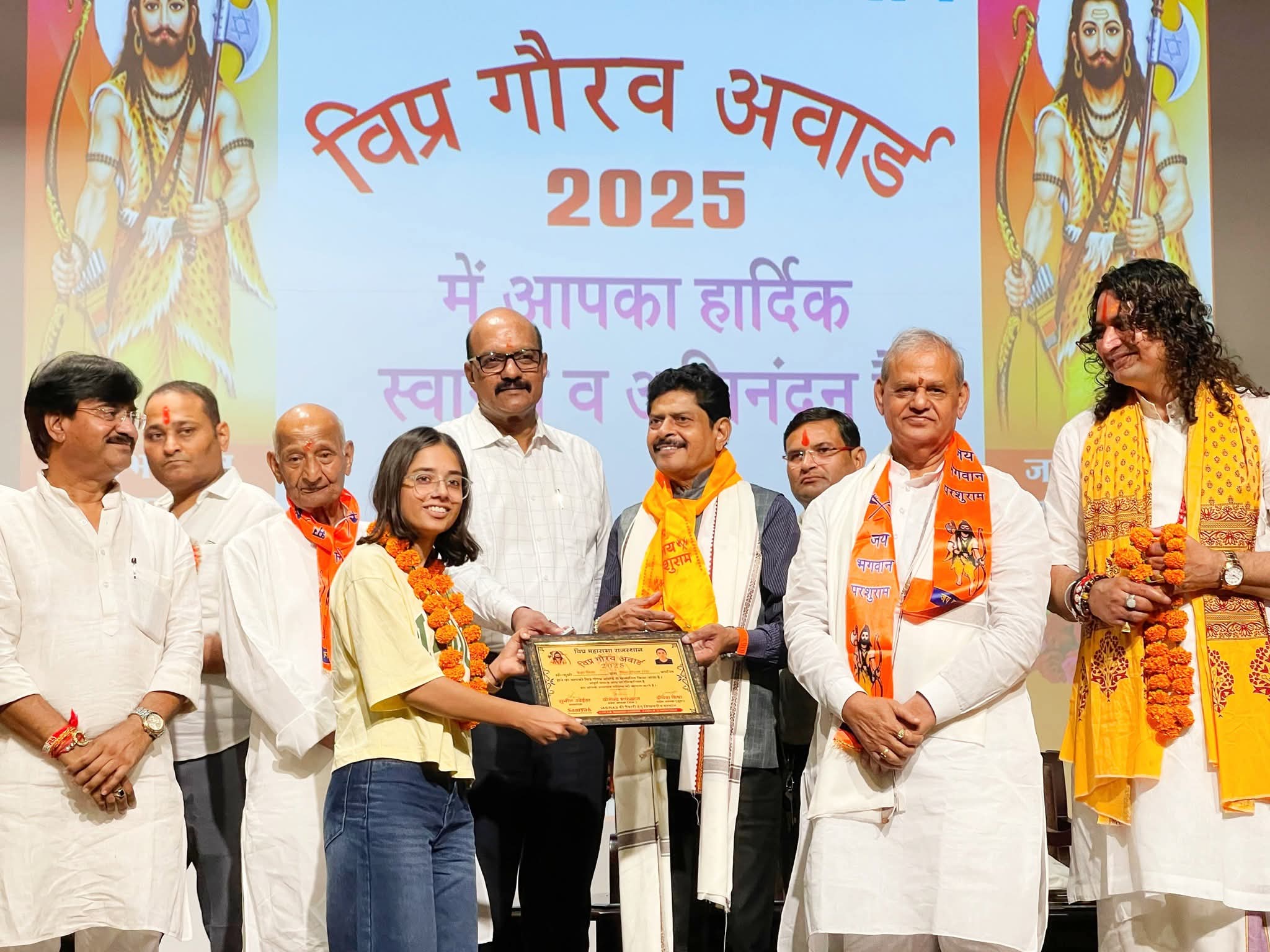 17 अगस्त, 2025 जयपुर। विप्र महासभा की ओर से प्रतिवर्ष की भांति इस वर्ष भी विप्र गौरव अवॉर्ड-2025 का आयोजन कंस्टीट्यूशन क्लब में किया गया। विप्र महासभा के संस्थापक सुनील उदेईया ने स्वागत भाषण में कहा कि ग़रीब बच्चों की शिक्षा के लिए एक कोरस फण्ड बनाना होगा जिससे समाज कोई भी बच्चा शिक्षा से वंचित ना रहे। भगवान श्री परशुरामजी के पूजन से शुरू हुए आयोजन में ब्राह्मण इतिहास की डाक्यूमेंट्री से बच्चों को इतिहास की जानकारी दी।